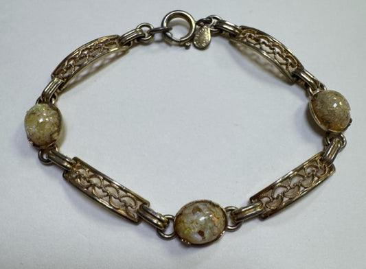 Vintage Sterling Silver Hinged Bangle 7" Bracelet Natural Baltic 1.28" Amber