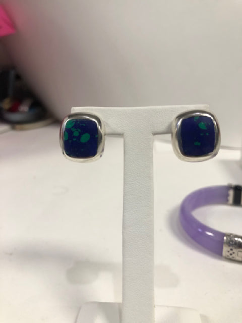 Native American Sterling Silver Multi Stone Inlaid Earrings WM .75" x .40" Leave