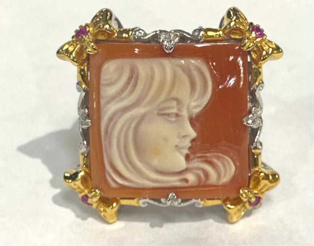 Michael Valitutti Gems En Vogue Sterling Silver Sq Carve Cameo Ring Ruby SZ 9 NH