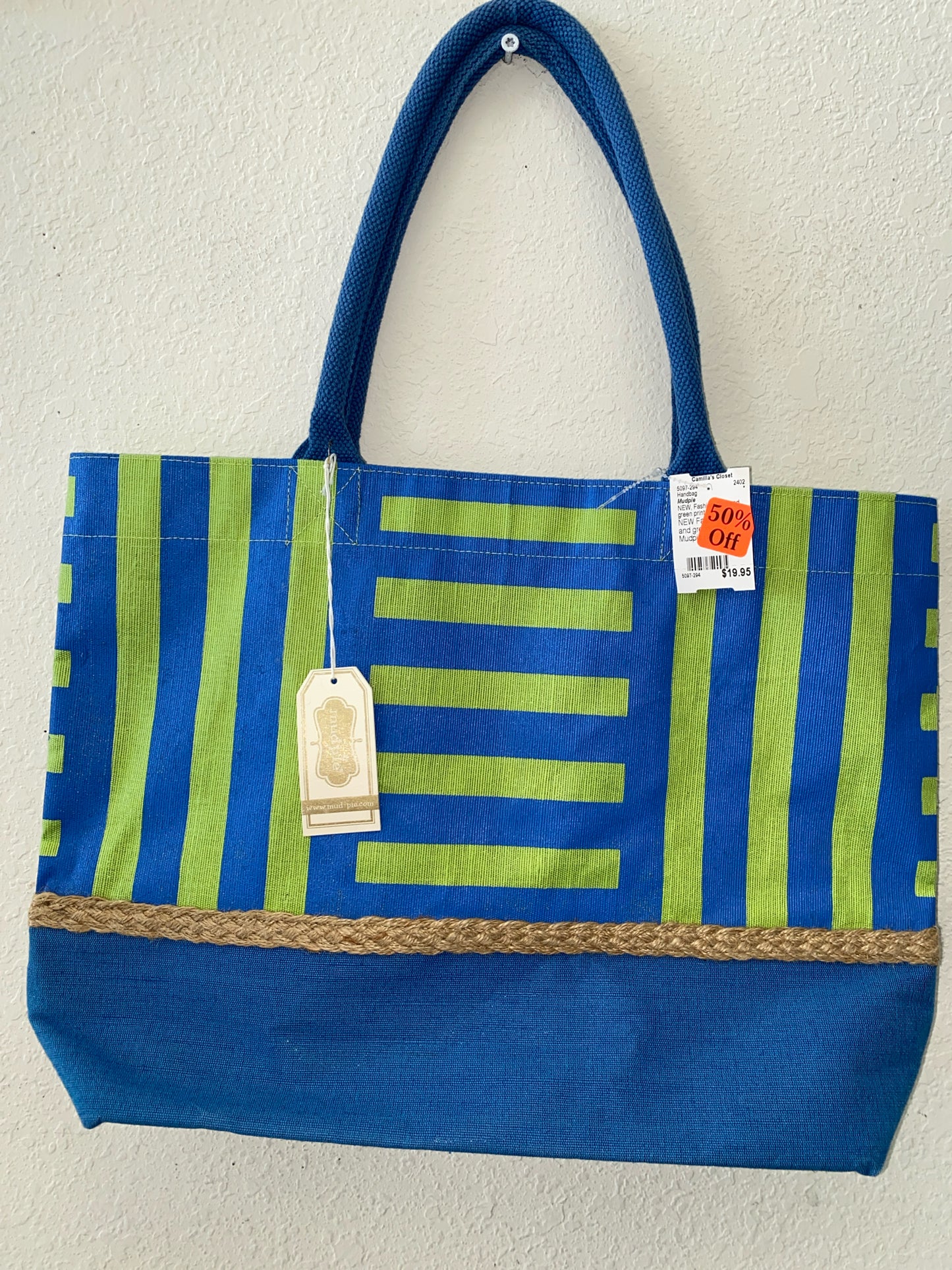 Fashion NEW Mudpie Blue and green print Handbag